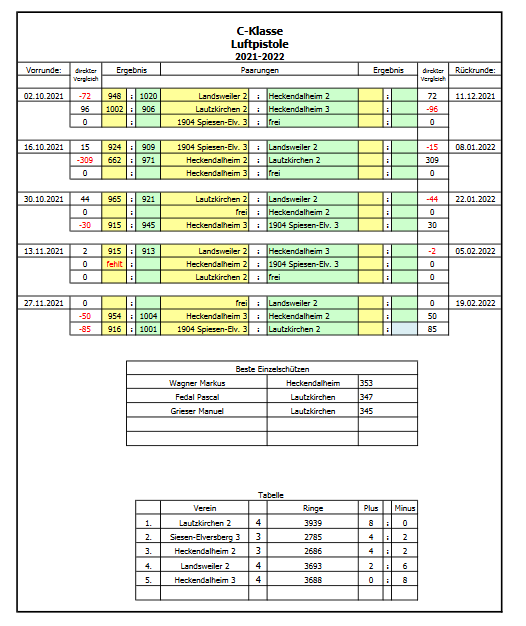 Die 2.Luftpistolenmannschaft krönt sich souverän zum Herbstmeister und verbessert dabei fasst ihren Topwert aus dem 1.Rundenkampf.