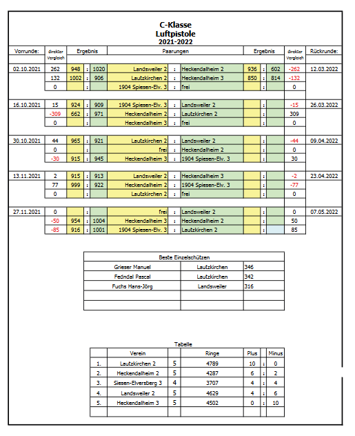 Dabei hätte man fast mit zwei Mann antreten müssen (bedingt durch Coronafällle) und hätte den Kampf dadurch verloren, jedoch stellte sich der eigentliche Luftgewehrjungschütze zur Verfügung, obwohl er noch nie eine Luftpistole in der Hand hatte.