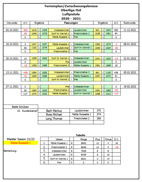 In dieser Saison half außerdem Arno Grieser coronabedingt aus, und konnte gute Leistungen (obwohl er eigentlich von Haus aus Luftgewehrschütze ist) zeigen.