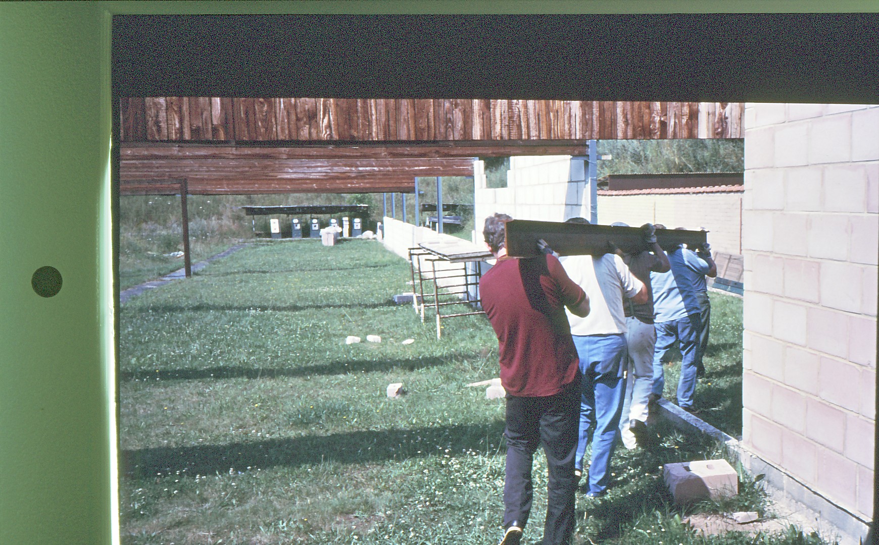 Im Jahr 1986 wurde aus sicherheitstechnischen und schießsportlichen Gründen mit der 2. ten Umbauphase begonnen. Die Schießanlage wurde um 5 Pistolenstände erweitert. Dazu war es erforderlich, wiederum etliche 1000 cbm Erde zu bewegen. Gleichzeitig wurden auf der KK Anlage 50m ,5 neue Hochblenden montiert. Dies hat uns das Gewerbeaufsichtsamt zur Auflage gemacht. Am 02. April 1986 erhielten wir den Genehmigungsbescheid Nr. 15/86 vom Gewerbeaufsichtsamt