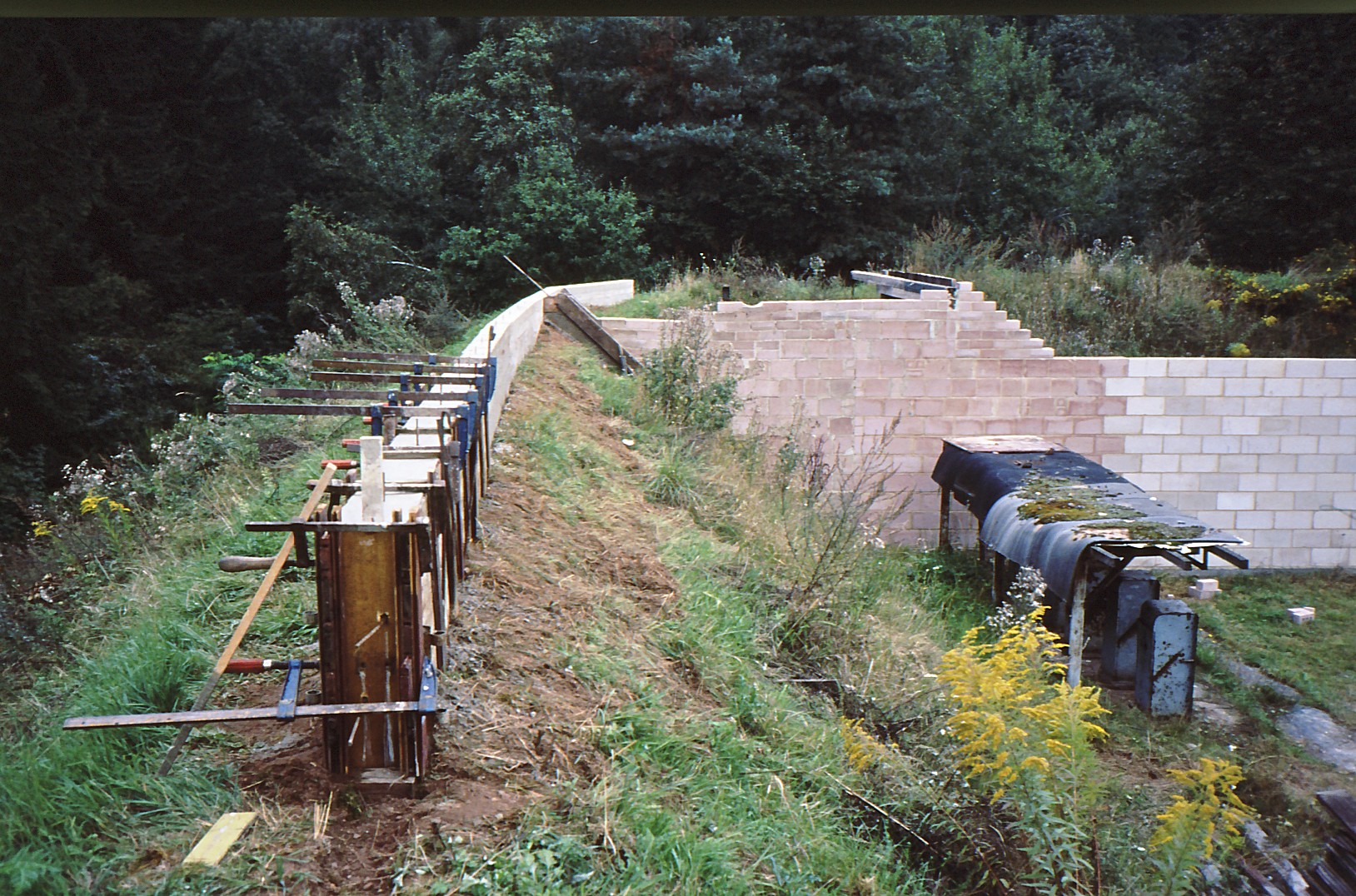 1990 war die Anlage mit der vorhandenen Stromleitung zu schwach. Also musste eine neue Leitung her. Nach Verhandlung mit der Stadt, kamen wir zu dem Ergebnis eine neue Leitung muss her. In Verhandlung mit der Fa. Friedrich Daut, er hat uns ein Angebot unterbreitet, eine Leitung mit 150 Quadrat Querschnitt auf eine Länge von 580 m zu verlegen. Dieser Querschnitt wurde von der Stadt zur Auflage gemacht.