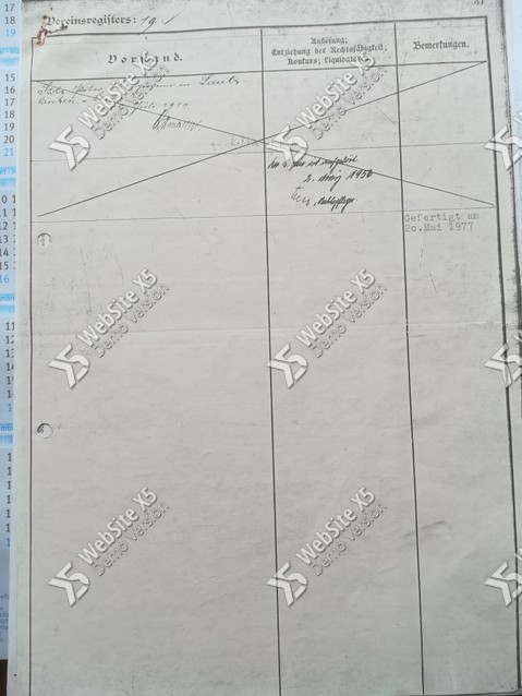 Die Satzung ist vom 25. Januar 1914 und wurde am 15. Juli 1914 in das Vereinsregister eingetragen.