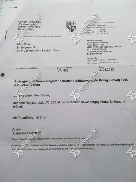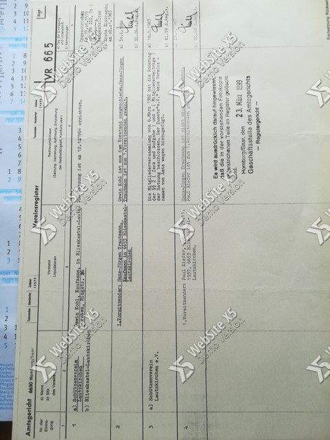 Beim Amtsgericht Homburg fanden wir eine Eintragung im Vereinsregister Band I Nummer 19 . Akt 1 - 4.