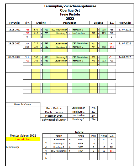Schütze / Gegner | Homburg 2 | Neunkirchen 1 | Homburg 1 |